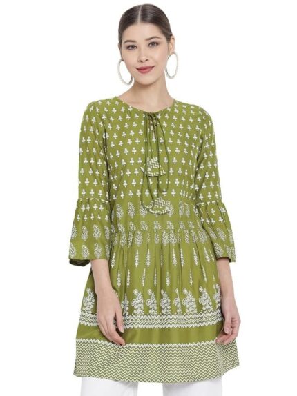 Short Kurti for Women | Indian Women’s Tunics Tops | Rayon Top with 3/4 Designer Sleeves | Kurta Shirt Top for Ladies