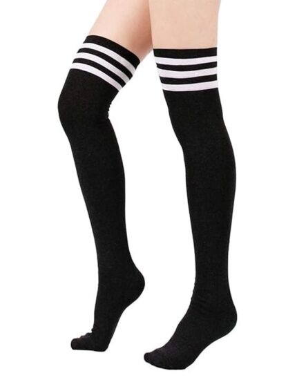 Planetarium Hub Women’s Full Coverage Transparent Thigh High Full Long Legs Length Stocking Socks (2 Black)