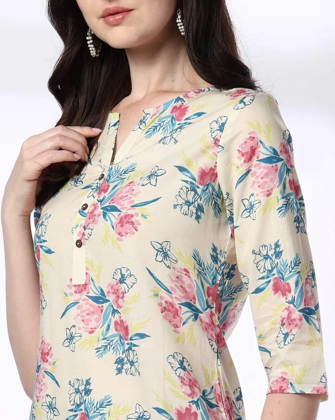 Women Floral Print Cotton Straight Kurta
