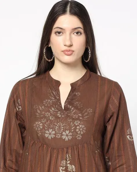 Women Floral Print Gathered A-Line Kurta