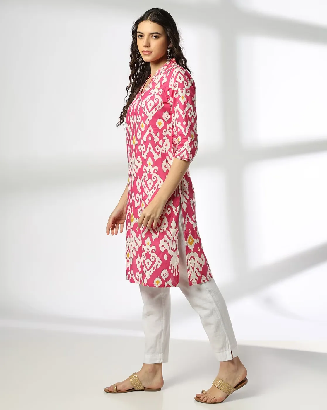 Women Ikat Cotton Straight Kurta