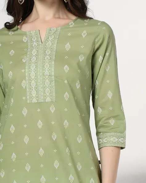Women Paisley Print Straight Kurta with Neck Tie-Up