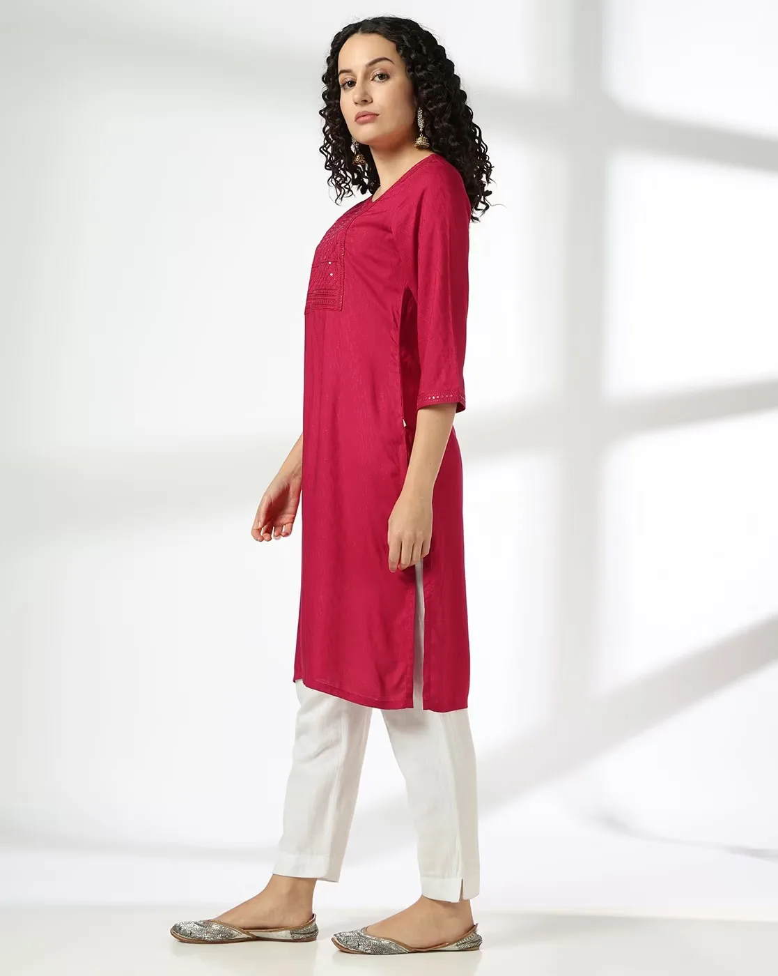 Women Dobby Weave Straight Kurta Original price was: ₹499.00.Current price is: ₹300.00. Incl GST.